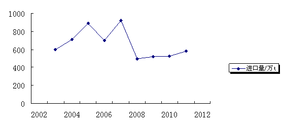 我国钾肥的自给率不足30%。全国缺钾的耕地占全部耕地面积的56%。我国土壤结构中钾元素分布不平衡,尤其在我国南方和长江流域广大地区的土壤中普遍缺钾,有超过8 000万hm2的中低产田需要改造,而钾肥施用不足已成为我国农作物进一步增产的主要制约因素之一。我国是全球钾肥需求量^大的市场,年钾肥需求量约800万~900万t(以K2O计),其中约50%依赖进口(见图1),w(K2O)40%以上的优度钾肥则全部依赖进口。
