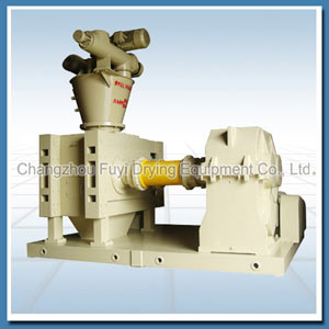 3) Force-feeding screw hopper: It is composed of variable frequency motor, cone helix, stirring knife tooth and cone feeding hopper with visual glass window as well as feeding mouth assemblies and so on. Its function is to further achieve degassing and perform pressure feeding.