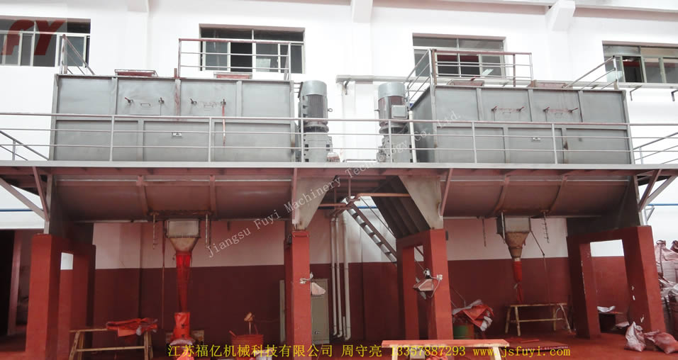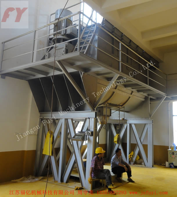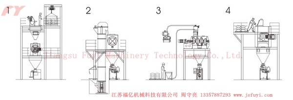 2:Áp dụng máy nâng cao kiểu đấu vận chuyển vật liệu, rồi vào trộn lẫn, trữ hàng vào kho vá đóng gói;
