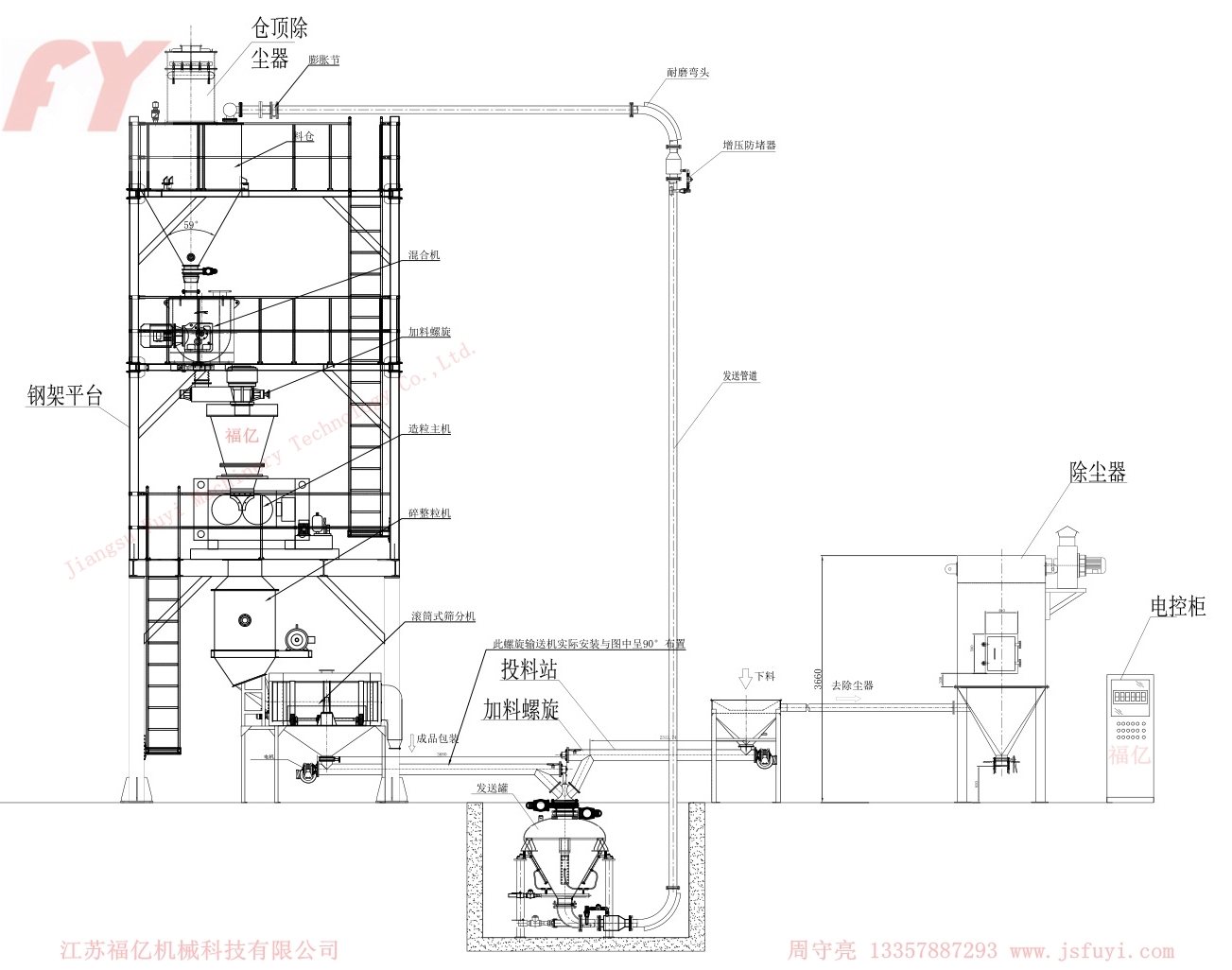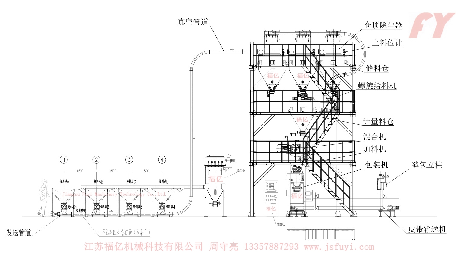 3:Máy lên vật liệu chân không bỏ vật liệu, trộn lẫn, trữ hàng vào kho rồi đóng gói, trên dưới cấu trúc một thể;