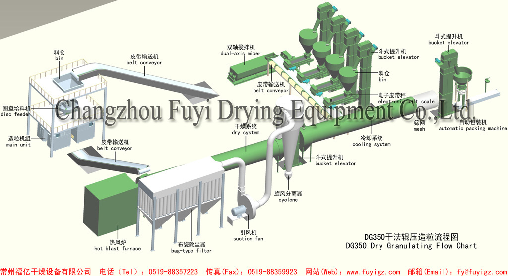 دستگاه سری DG میتواندبه طورمداوم، درخطوط تولید با ظرفیت تولید15000 تا 100000 تن در سال تولید کند. این دستگاه میتواند ترکیبات فرمول را حفظ کند، زیرا فرآیند بدون خشک کردن است و تولید در دمای محیط و شرایط یکسان صورت می پذیرد. کیفیت محصولات تولید شده توسط سری DG مطابق مشخصات فنی کود های کامل و کودهای NPK است. به ویژه، تولید محصولات کلریدآمونیوم، سولفات آمونیوم، بیکربنات آمونیوم، کلرید پتاسیم وسایر کود ها با نیازها مطابقت دارد. این دستگاه میتواندتمام انواع مواد با غلظت های کم، متوسط و زیاد را فشرده و گرانول نماید.
